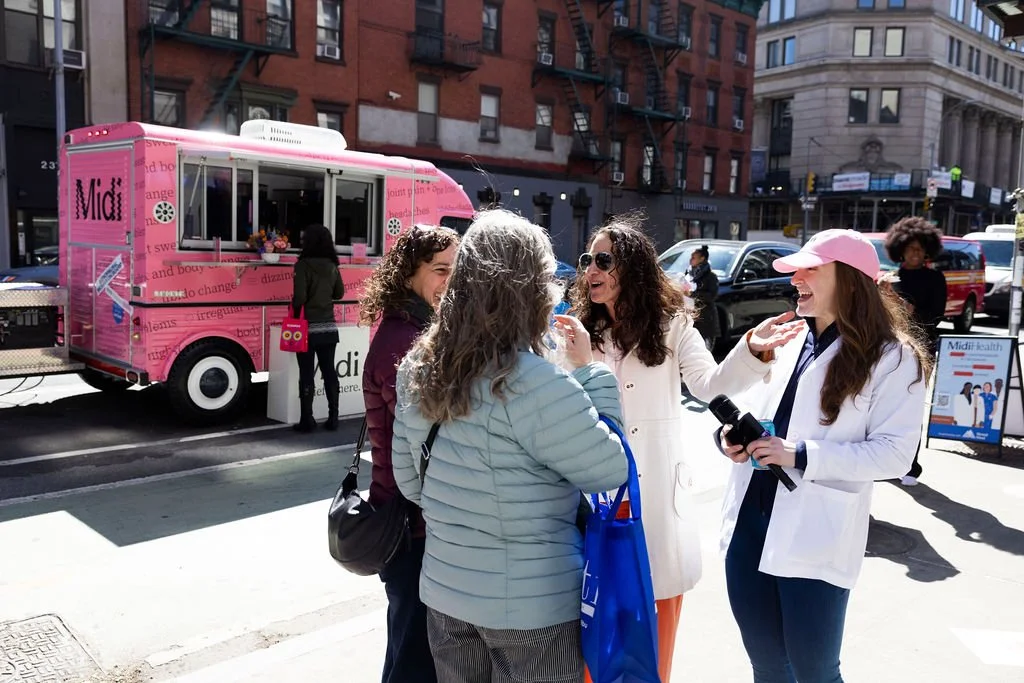 Midi Health took it to the streets of NYC to raise awareness about their incredible virtual healthcare services to help treat those experiencing perimenopause and menopause. We packed a punch with an exterior takeover of the Iconic Newsstand on Lafayette street, a fully wrapped hot pink coffee truck (covered in clever taglines), and a gorgeous media and influencer breakfast at The Butcher’s Daughter. The Midi clinicians parked themselves at the coffee truck to educate passersby on the symptoms and possible treatments for menopause and perimenopause. Our team worked side by side with the Midi Health from creative conception to production and execution - including supporting the team with copywriting and graphic design. The result was an extraordinary day of community building, and sharing helpful tips for anyone experiencing symptoms to find relief.